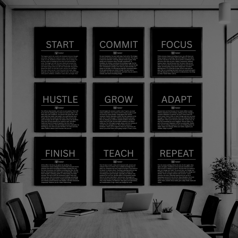 We create visual reminders designed to reinforce focus, discipline, and identity. Each piece is built with intention — not to decorate your space, but to influence how you show up in it.