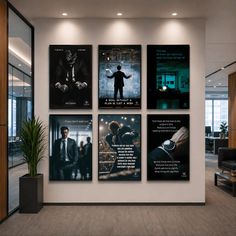 We create visual reminders designed to reinforce focus, discipline, and identity. Each piece is built with intention — not to decorate your space, but to influence how you show up in it.