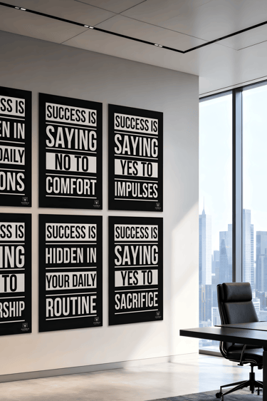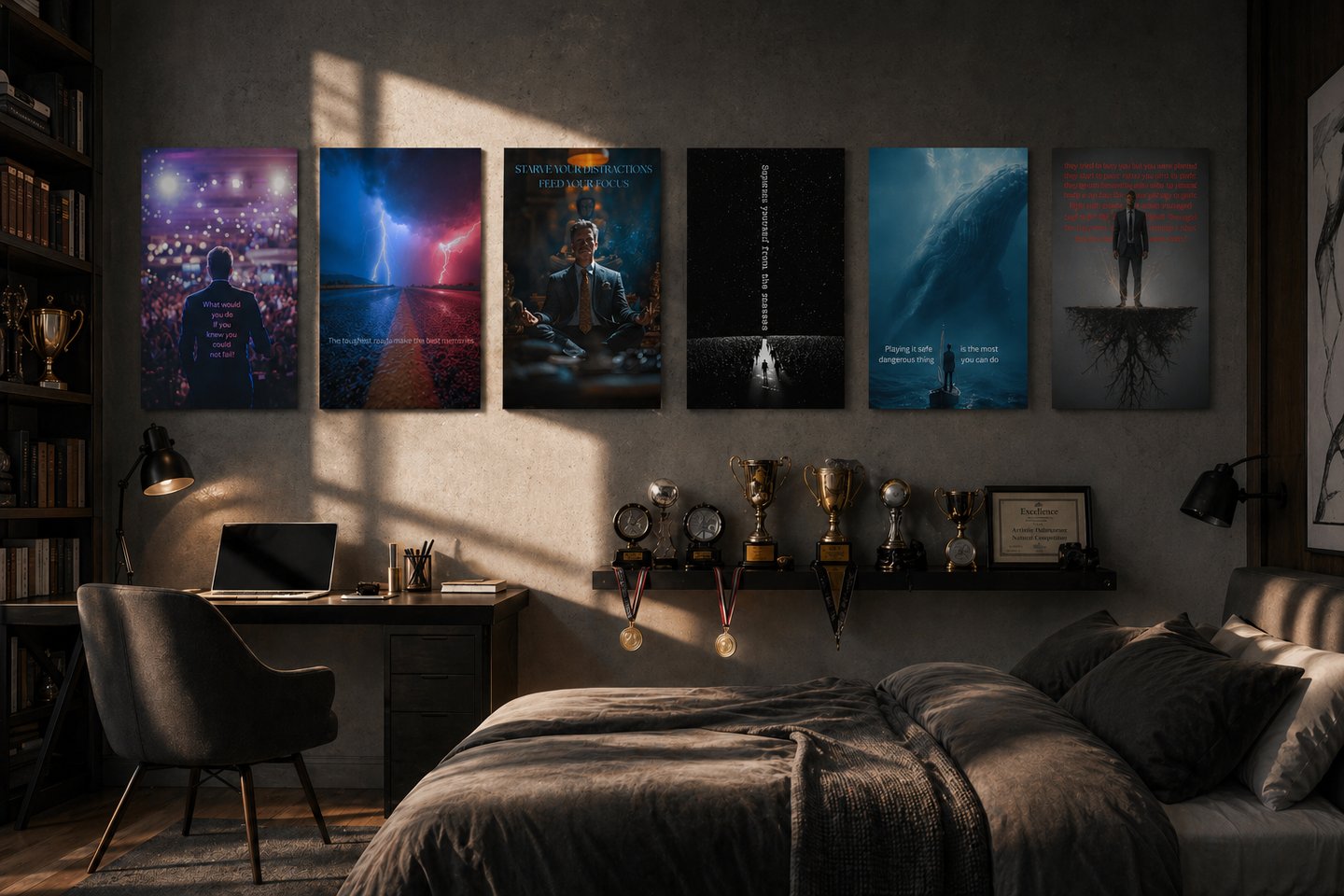 We create visual reminders designed to reinforce focus, discipline, and identity. Each piece is built with intention — not to decorate your space, but to influence how you show up in it.